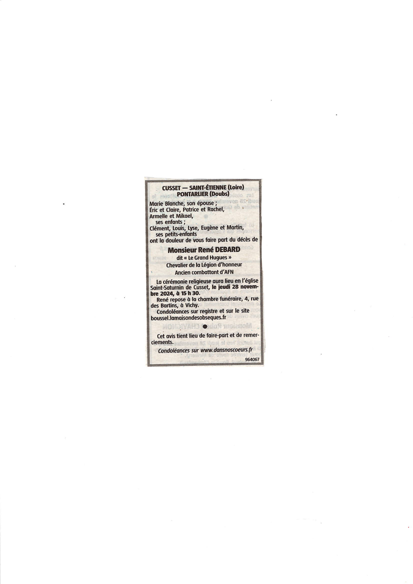 Décédé à Vichy (03200, France) le samedi 23 novembre 2024 à l'âge de 88 ans