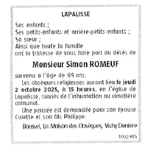 Décédé à Vichy (03200, France) le dimanche 28 septembre 2025 à l'âge de 95 ans