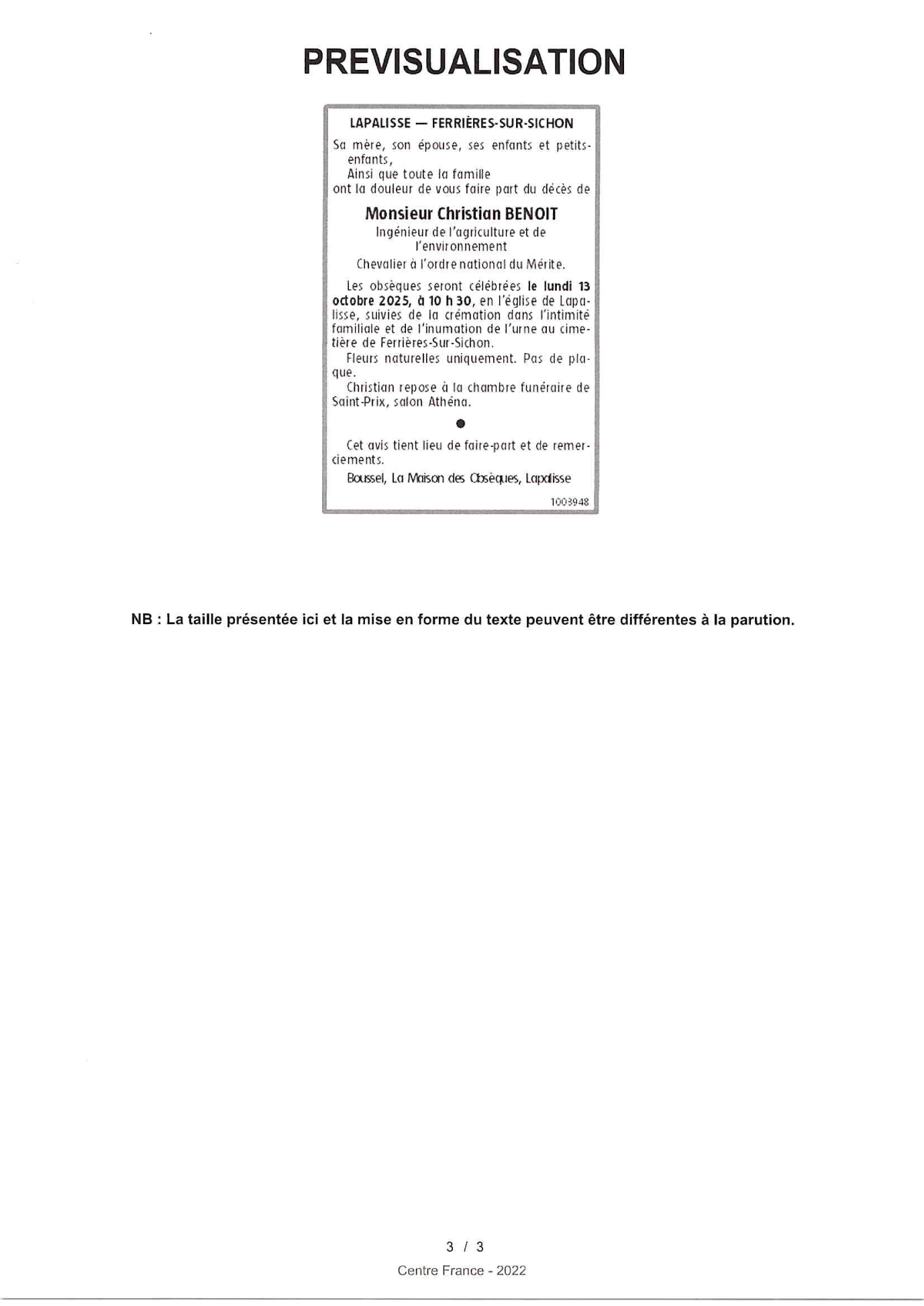 Annonce nécrologique