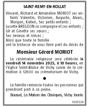 Décédé à Vichy (03200, France) le mercredi 5 novembre 2025 à l'âge de 73 ans