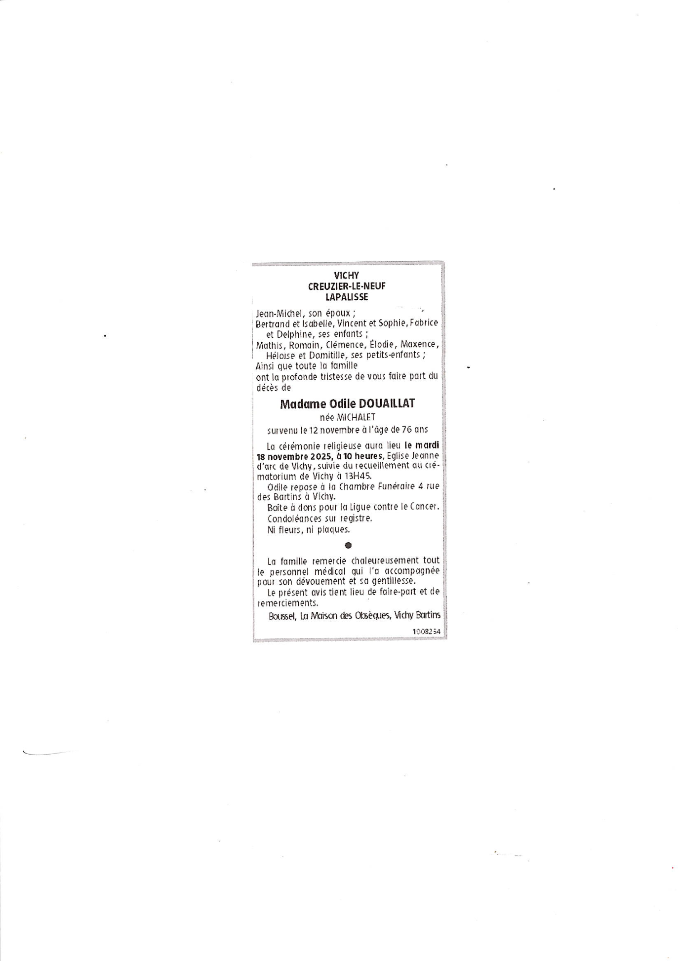 Epouse de Monsieur Jean-Michel DOUAILLAT