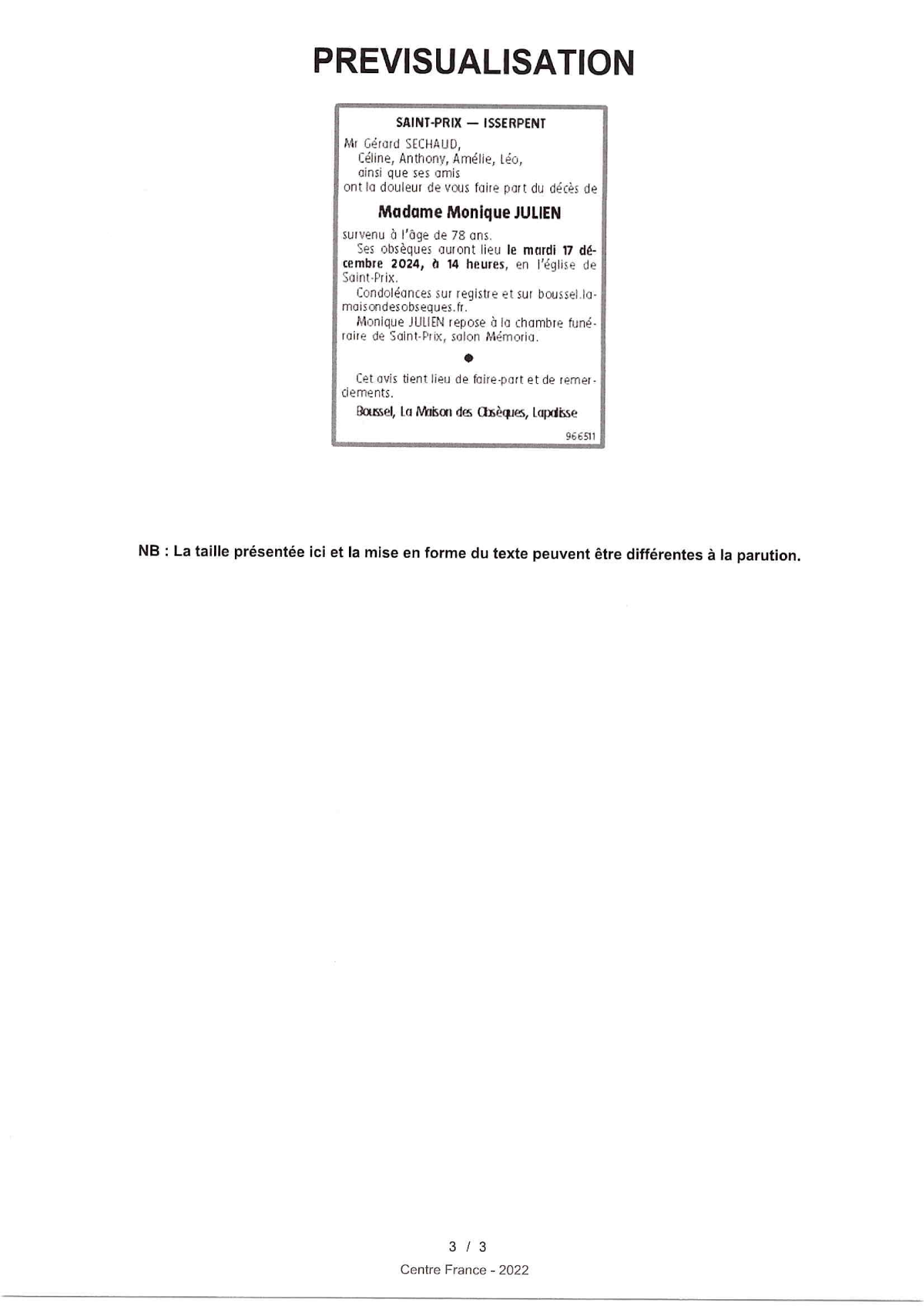 Annonce nécrologique