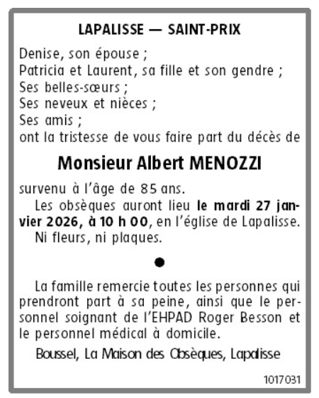 Décédé à Saint-Gérand-le-Puy (03150, France) le dimanche 18 janvier 2026 à l'âge de 85 ans