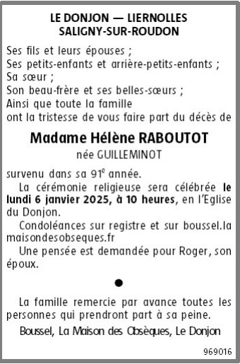 Madame Hélène RABOUTOT née GUILLEMINOT