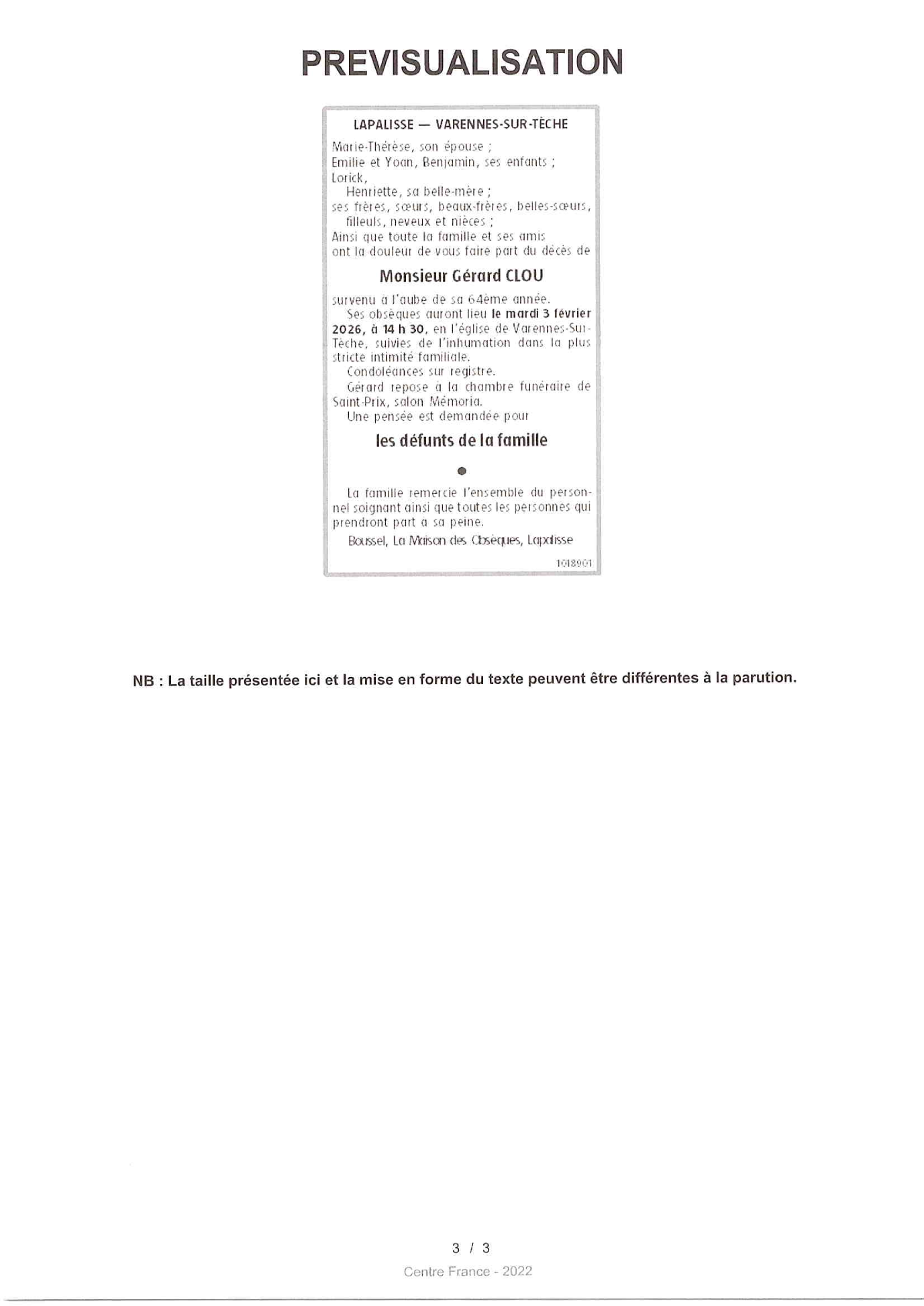Décédé à Vichy (03200, France) le jeudi 29 janvier 2026 à l'âge de 63 ans