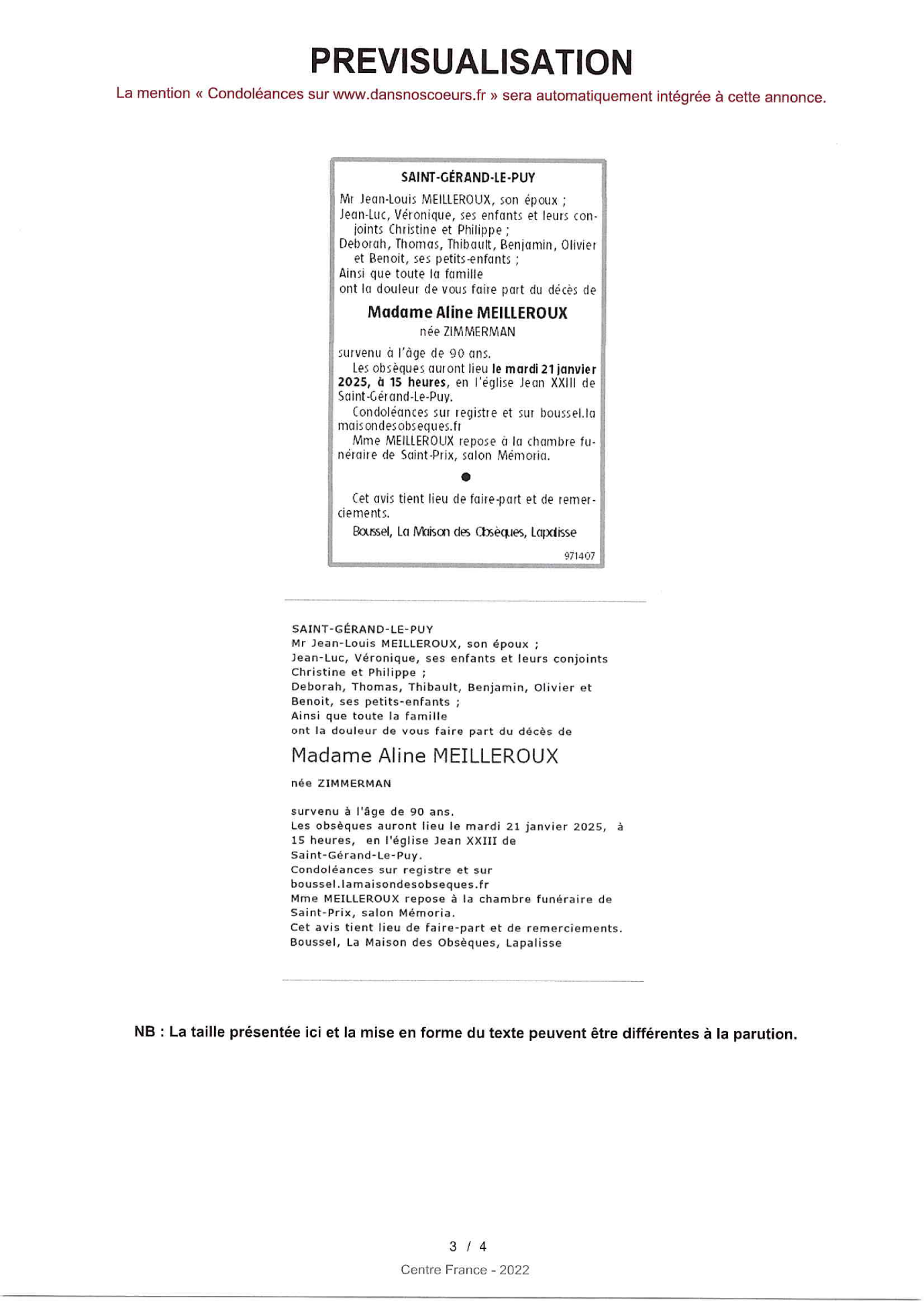 Annonce nécrologique
