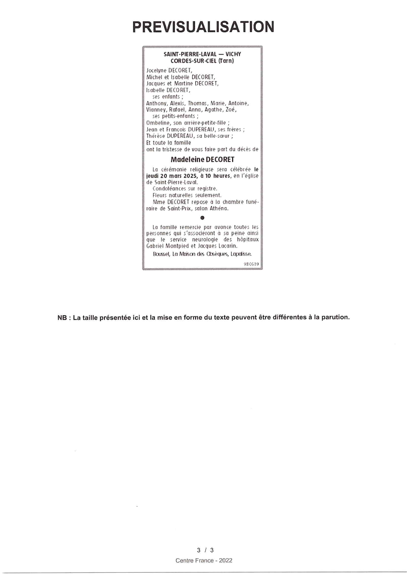 Annonce nécrologique
