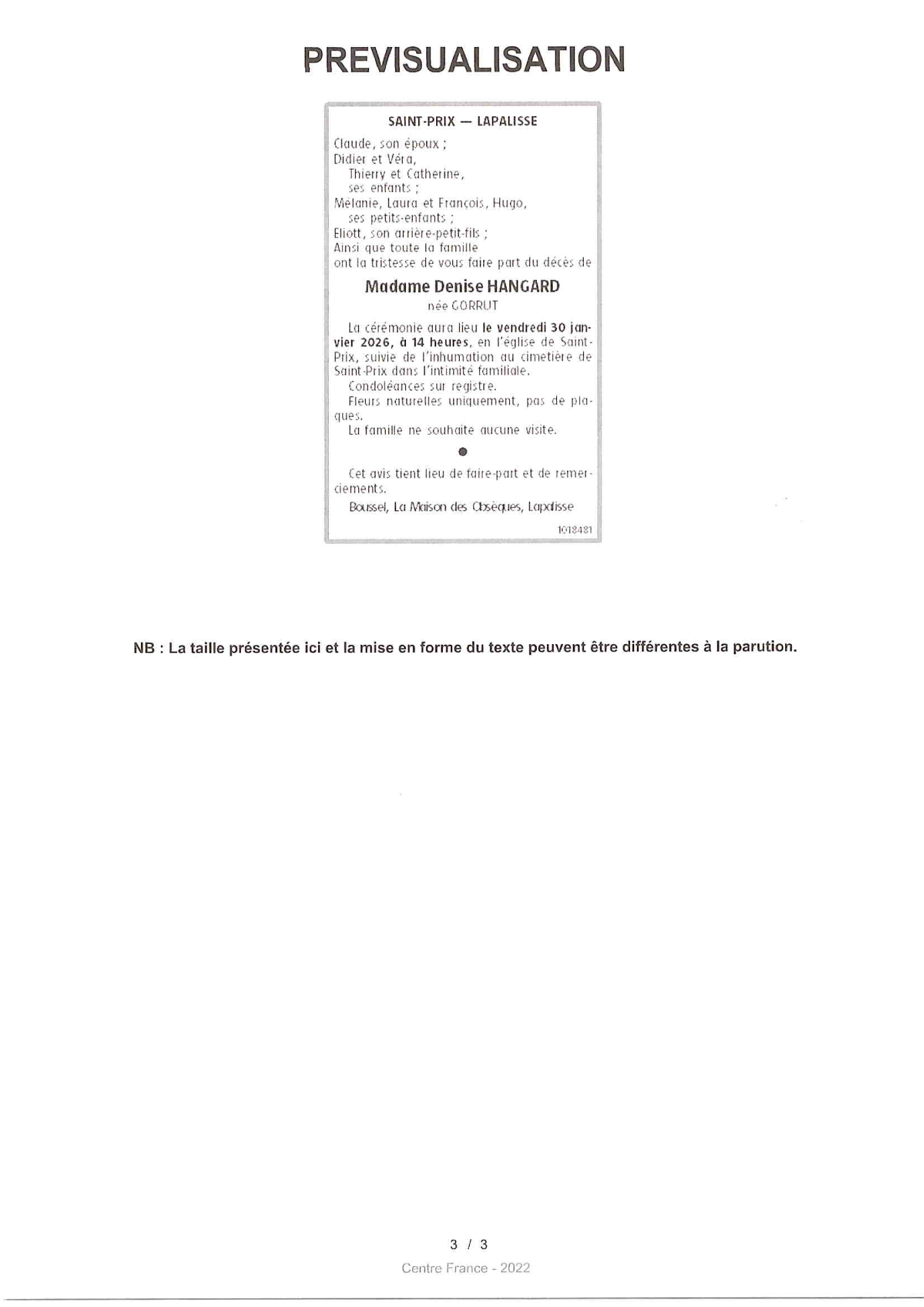 Décédée à Lapalisse (03120, France) le lundi 26 janvier 2026 à l'âge de 89 ans