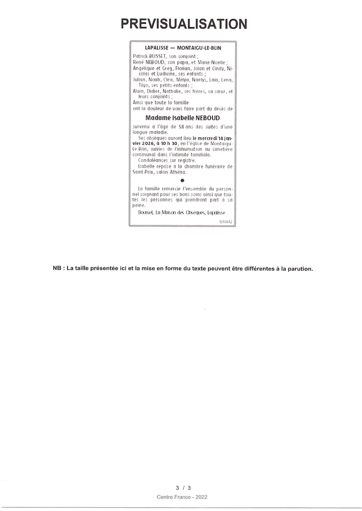 Annonce nécrologique