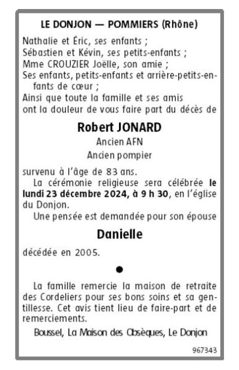 Veuf de Madame Danielle JONARD